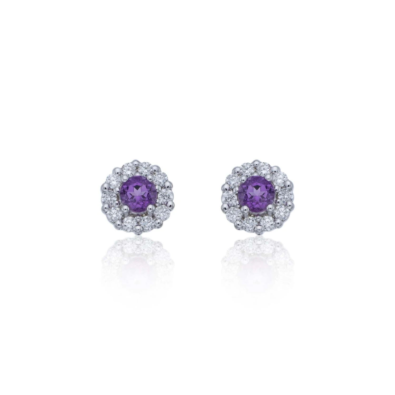 Chisholm Hunter 9ct White Gold Diamond 0.17ct And Amethyst Halo Earrings