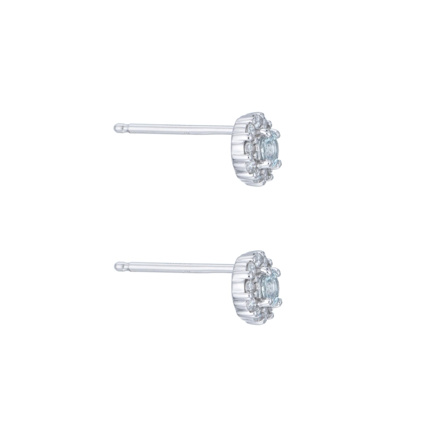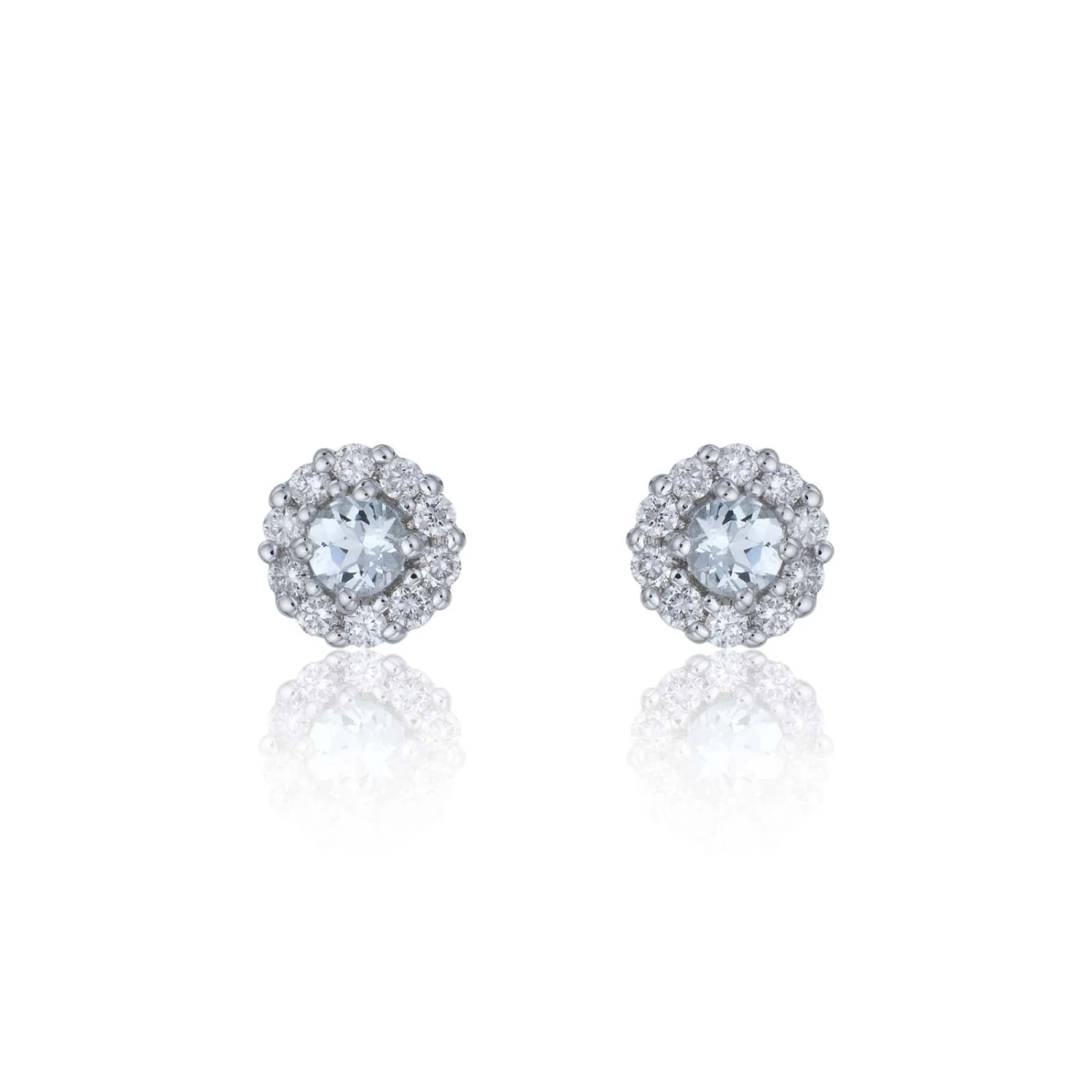 Chisholm Hunter 9ct White Gold Diamond 0.17ct And Aquamarine Halo Earrings