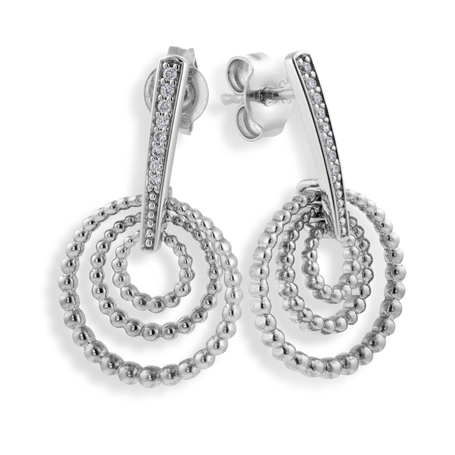 Be the first to review “Chisholm Hunter 9ct White Gold Diamond Set 3 Circle Drop Earrings 0.08ct” Cancel reply