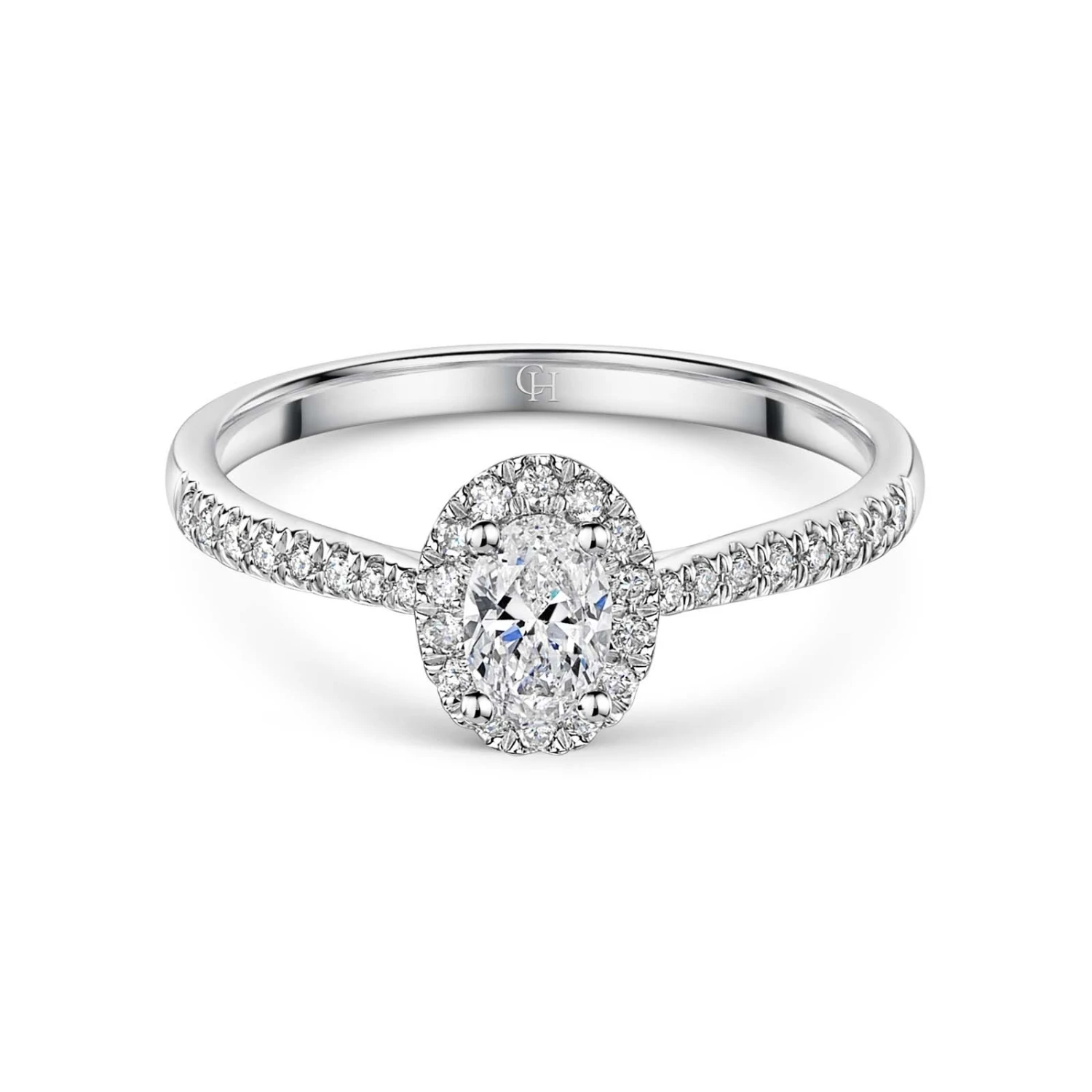 Chisholm Hunter 9ct White Gold Oval Cut 0.50ct Diamond Halo Solitaire Ring