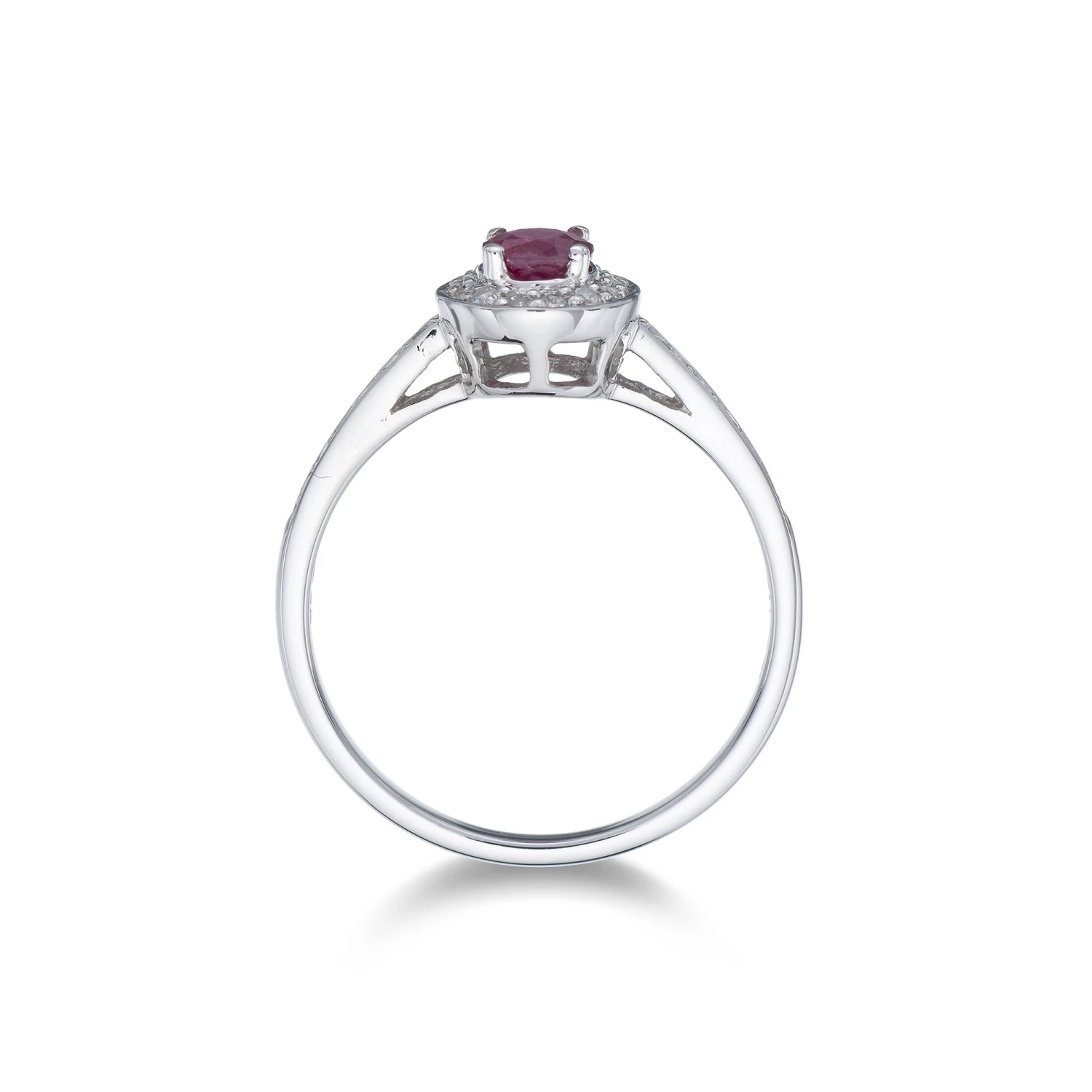 Chisholm Hunter 9ct White Gold Oval Cut Ruby 0.13ct Diamond Halo Ring