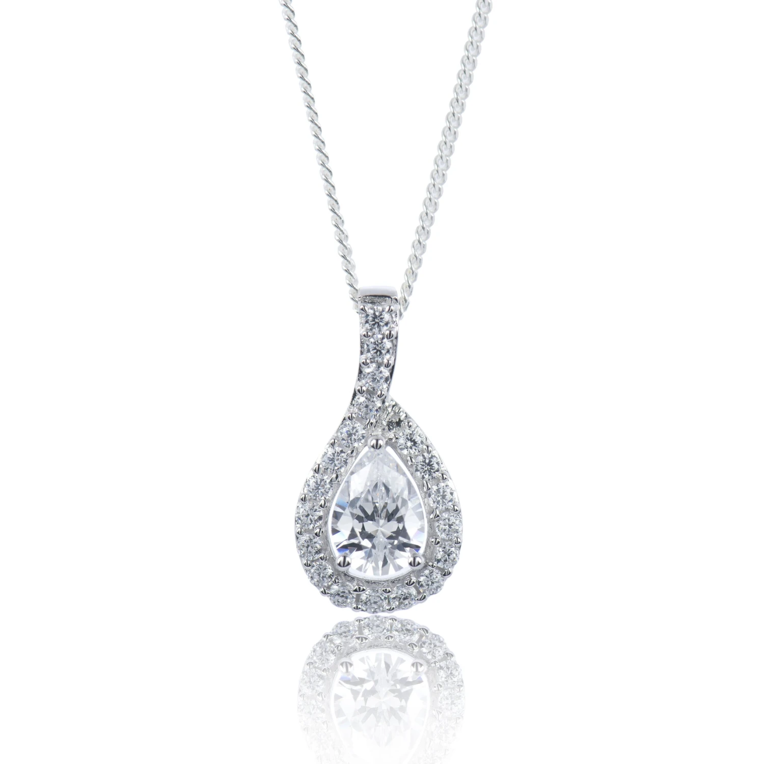 Chisholm Hunter 9ct White Gold Pear Cut Cubic Zirconia Halo Pendant
