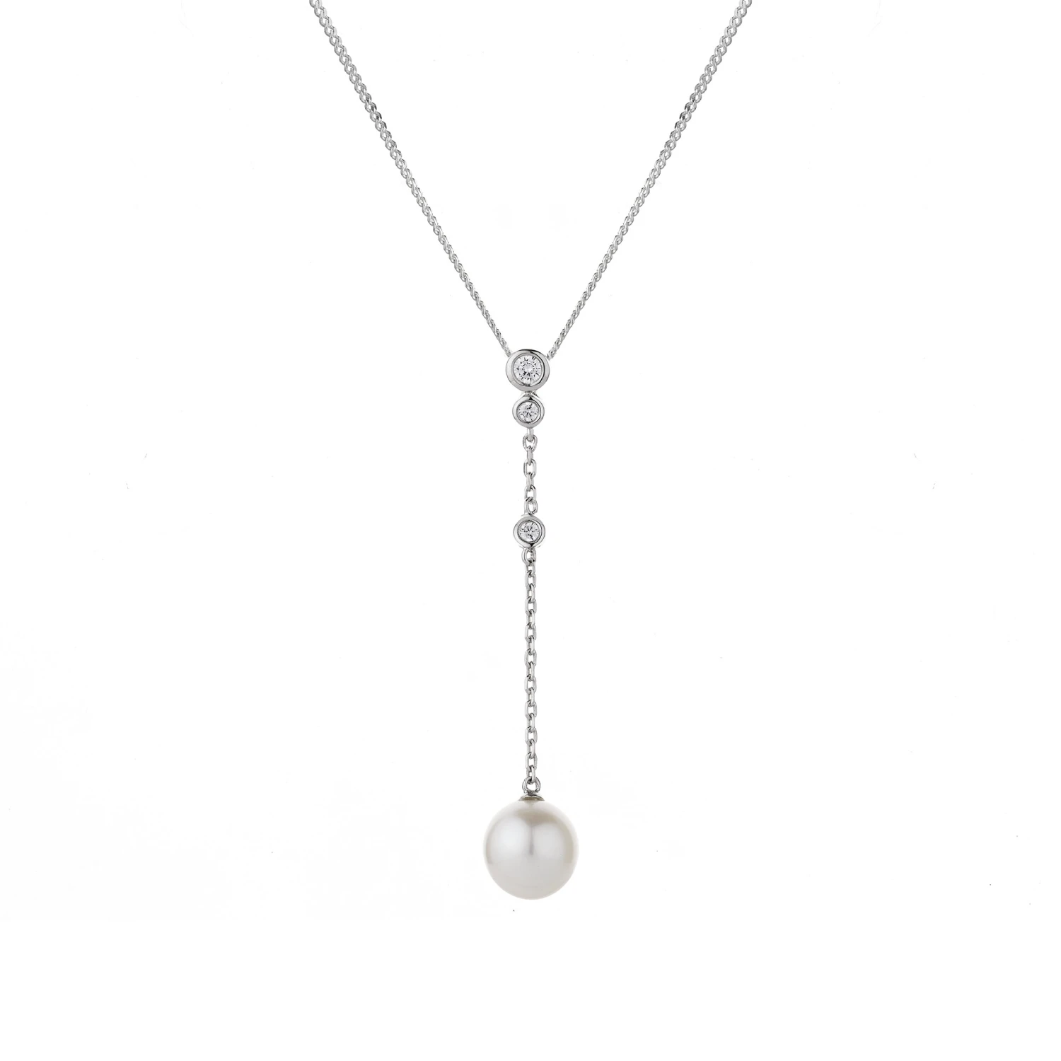 Be the first to review “Chisholm Hunter 9ct White Gold Pearl And Diamond 0.08ct Long Drop Pendant” Cancel reply