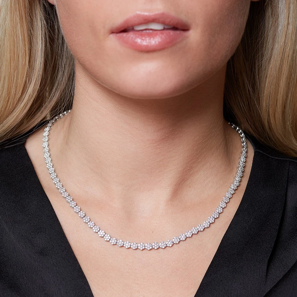 Chisholm Hunter 9ct White Gold Round Brilliant 6.65ct Diamond Cluster Necklace