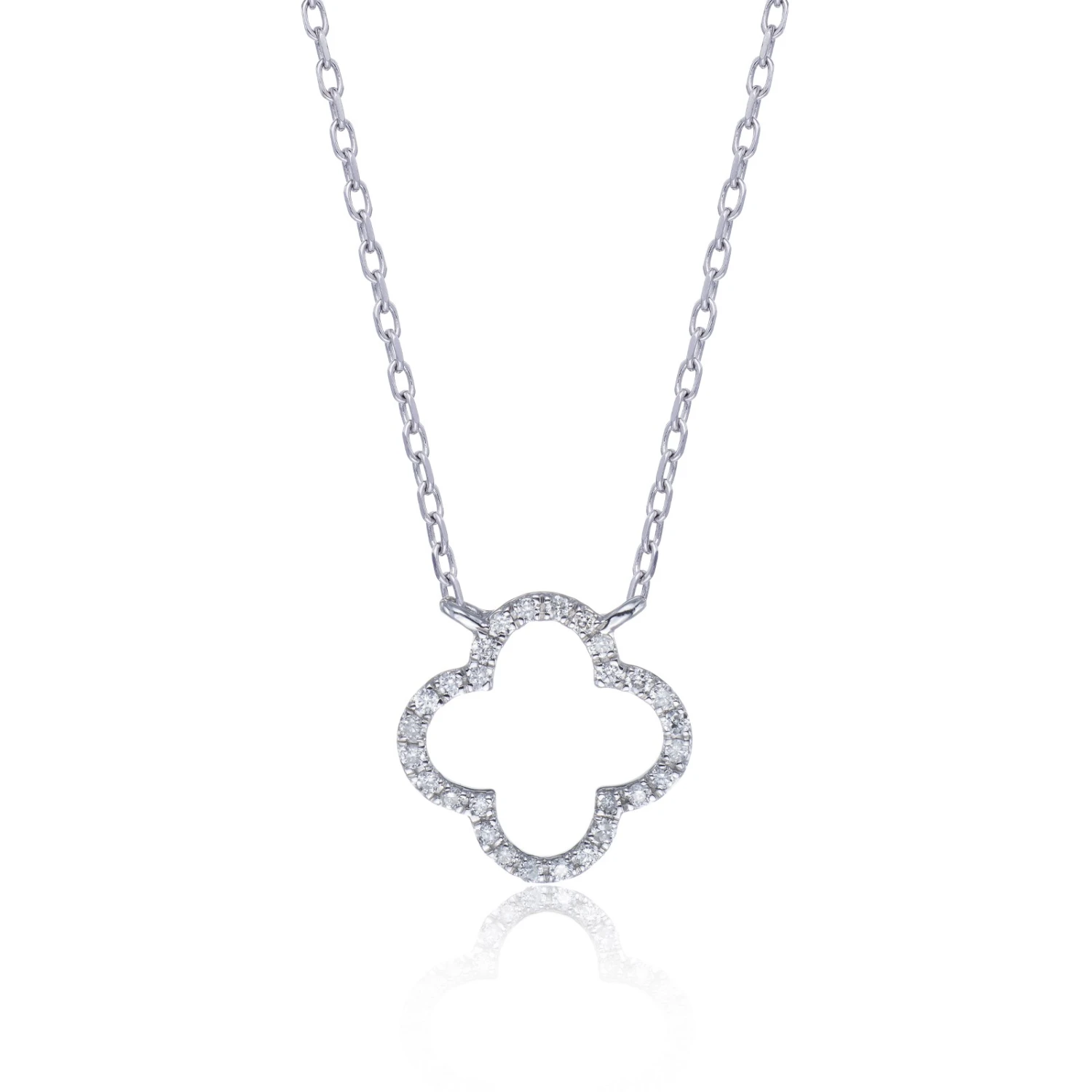 Chisholm Hunter 9ct White Gold Round Brilliant Cut 0.13ct Diamond Clover Necklet