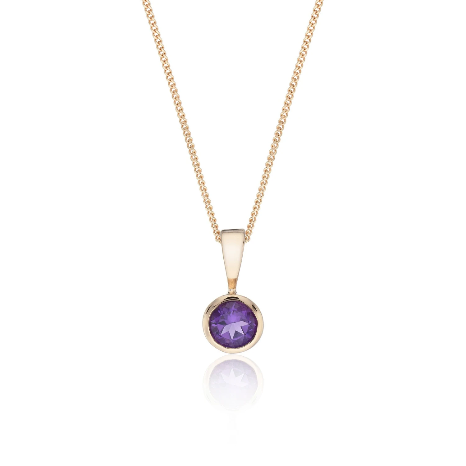 This dainty 9ct Yellow Gold Amethyst Rub Over Pendant from Chisholm Hunter will provide a gentle glow from the neck of the wearer. The amethyst is though to bring peace and tranquillity, making this pendant the perfect piece to add to your collection. Set in smooth yellow gold, this can be styled with the matching amethyst pieces.