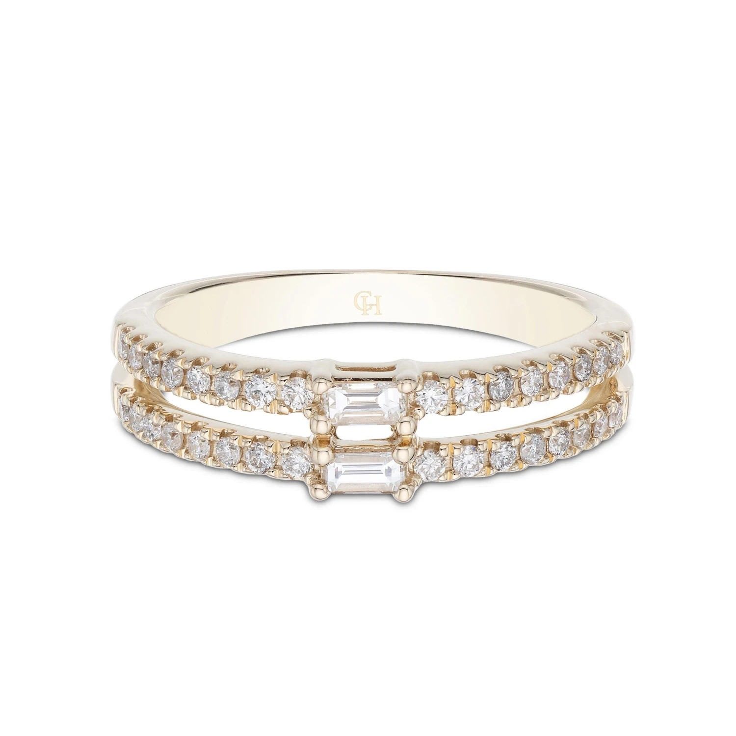 Chisholm Hunter 9ct Yellow Gold Brilliant And Baguette Cut Diamond 0.31ct Two Row Ring