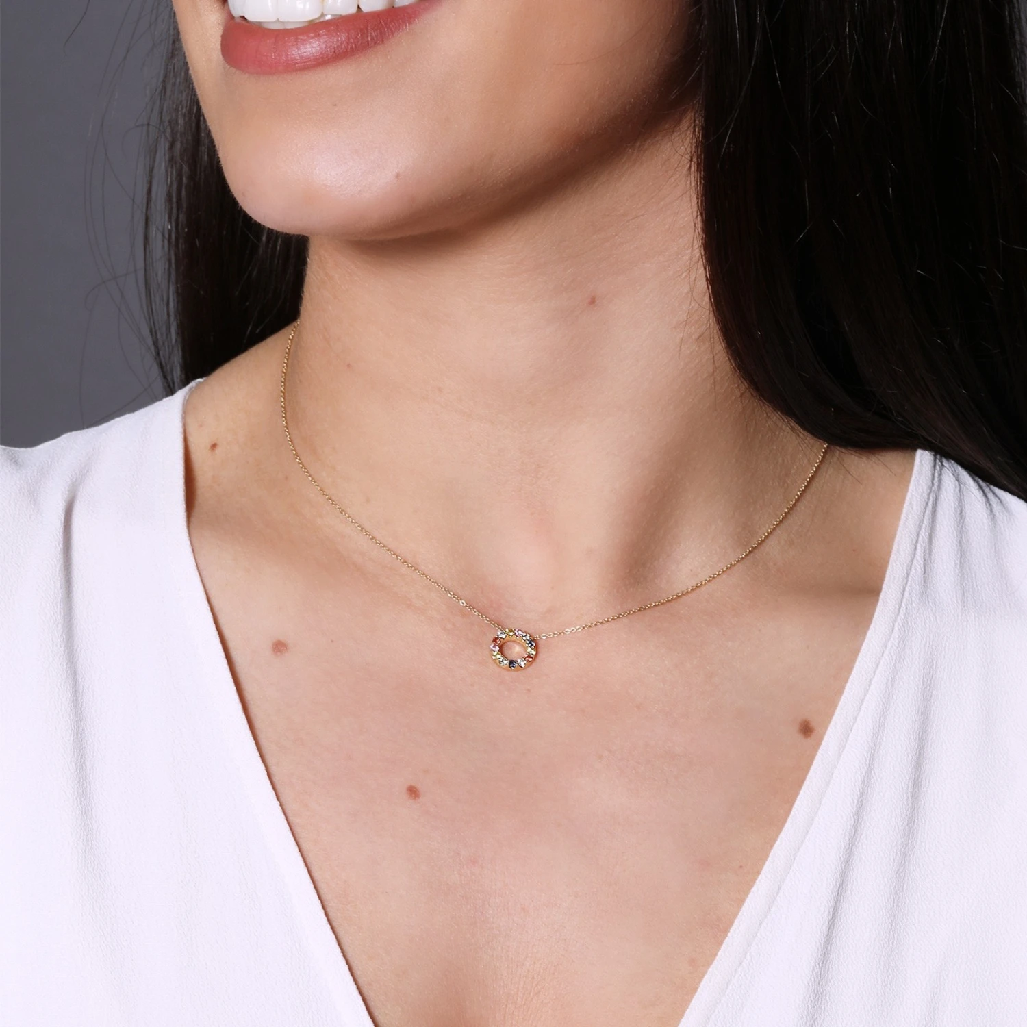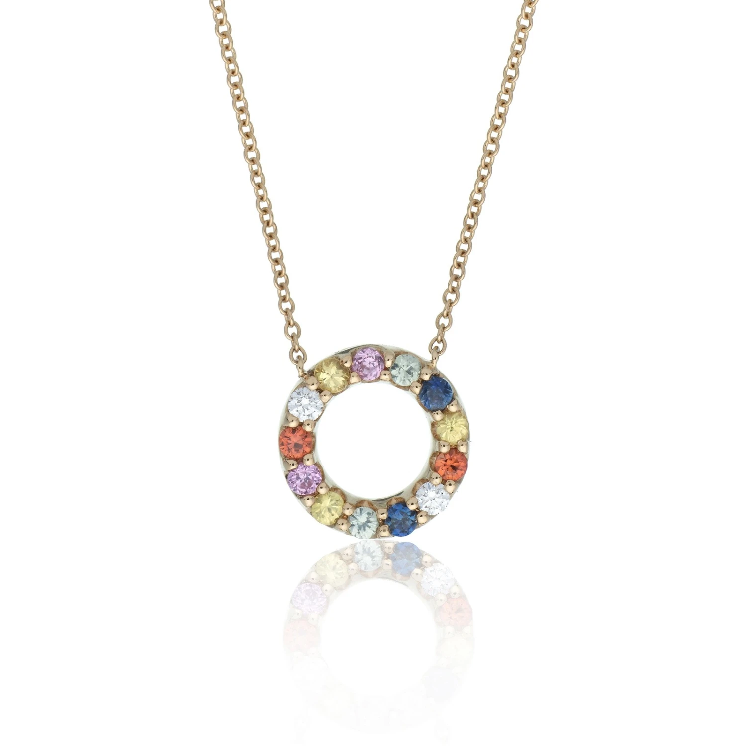 Chisholm Hunter 9ct Yellow Gold Brilliant Cut 0.37ct Rainbow Sapphire And Diamond Circle Necklace