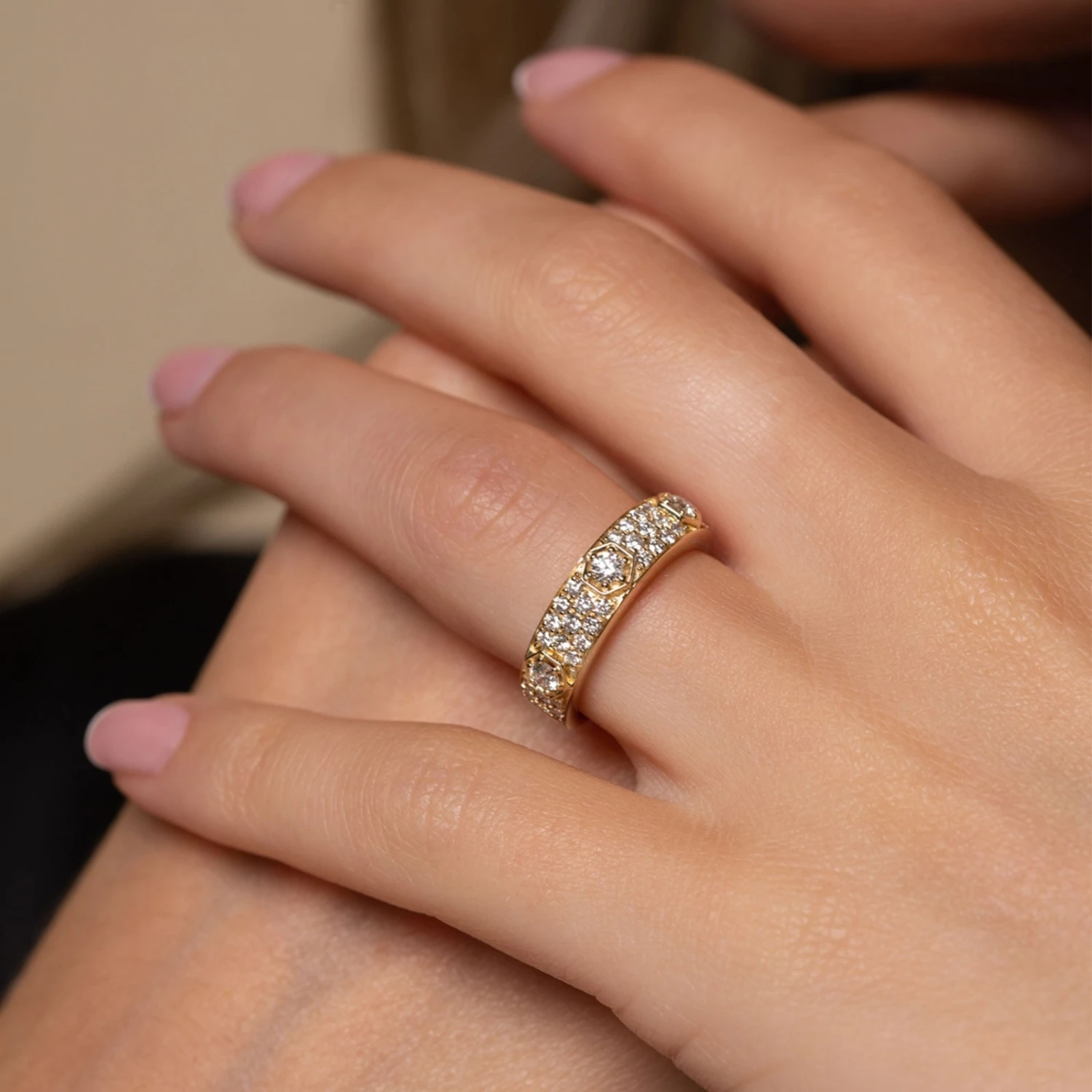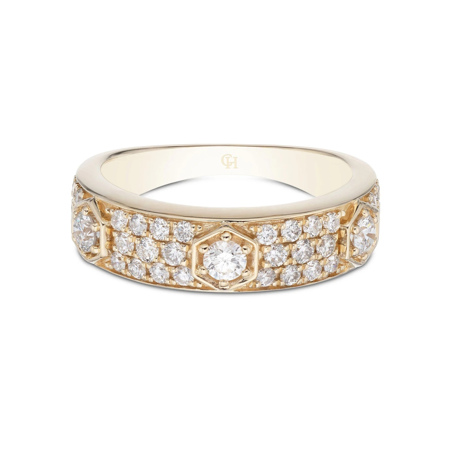 Chisholm Hunter 9ct Yellow Gold Brilliant Cut Pave Diamond 0.72ct Fancy Band Ring
