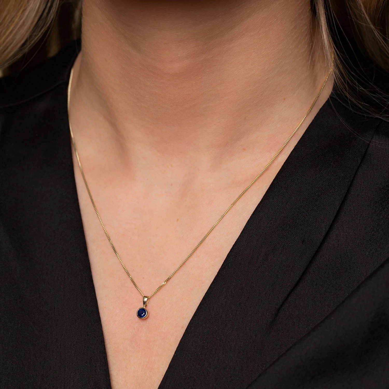 Add this dainty 9ct Yellow Gold Sapphire Rub Over Pendant from Chisholm Hunter to your everyday collection. Featuring a striking sapphire, the stone associated with royalty, in the centre of smooth yellow gold, this pendant will gently glow from the neck of the wearer.
