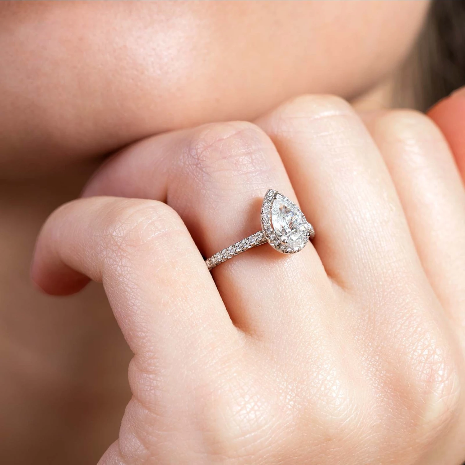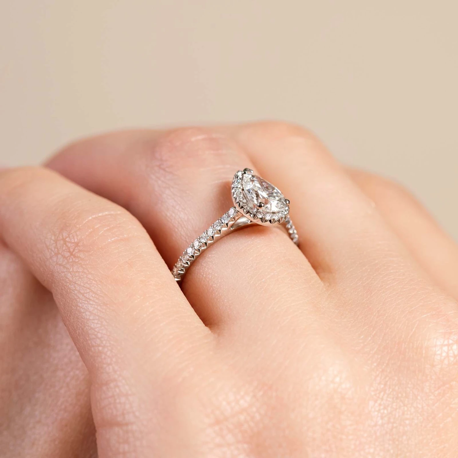 Be the first to review “Chisholm Hunter Platinum Certified 1.00ct Pear Halo Solitaire Ring” Cancel reply