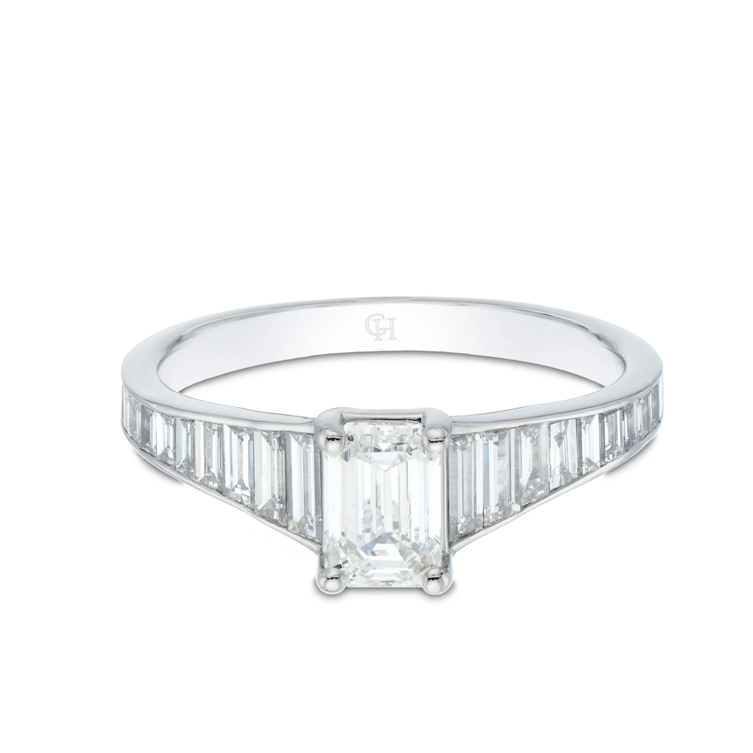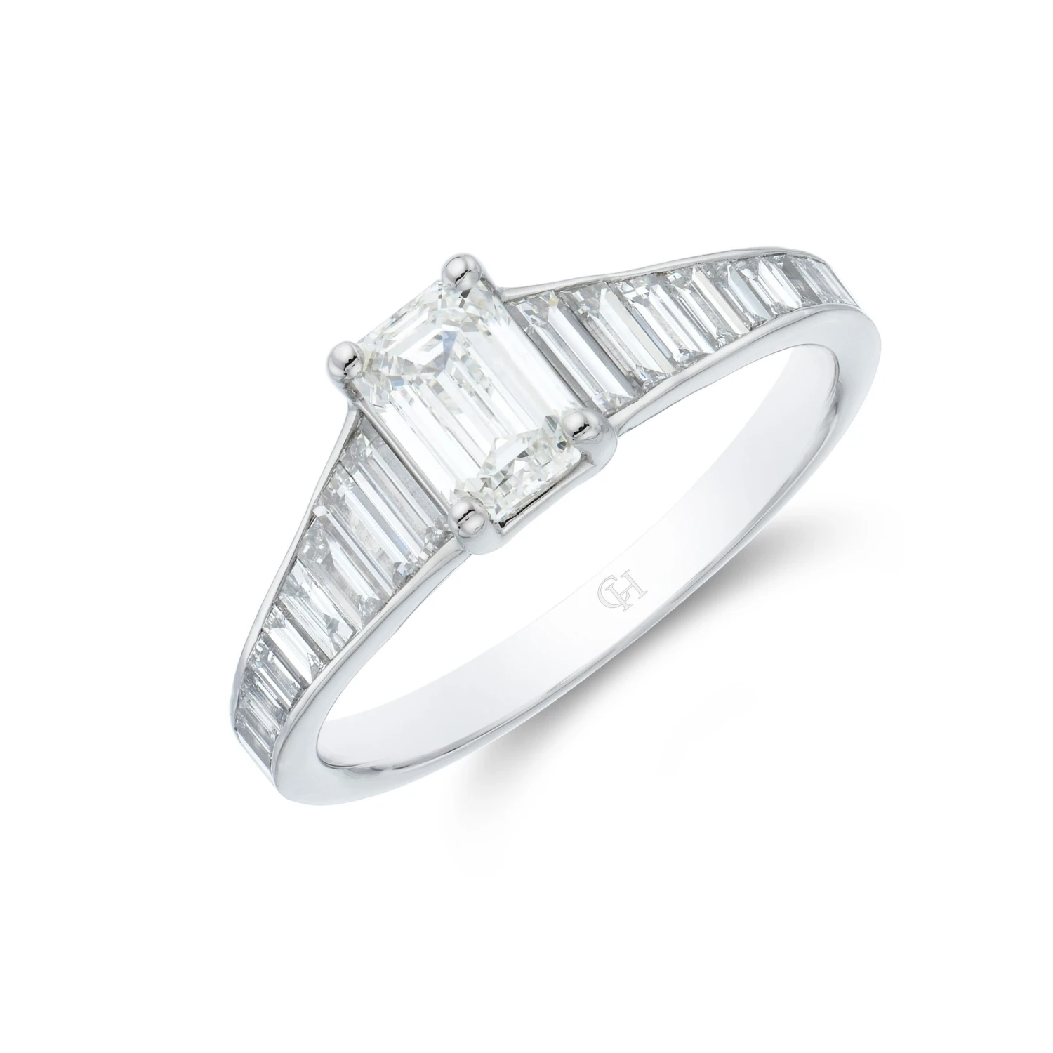 Chisholm Hunter Platinum Emerald Cut 0.75ct Diamond Solitaire Ring