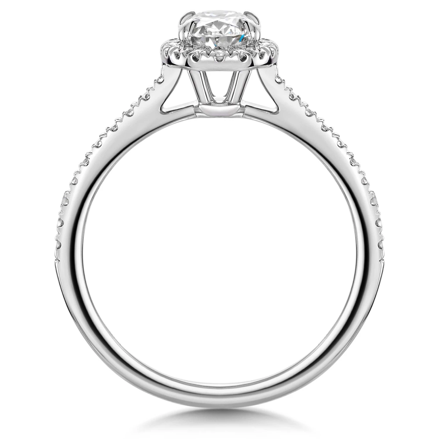Chisholm Hunter Platinum Lab Grown 0.75ct Oval Diamond Halo Shoulders Ring