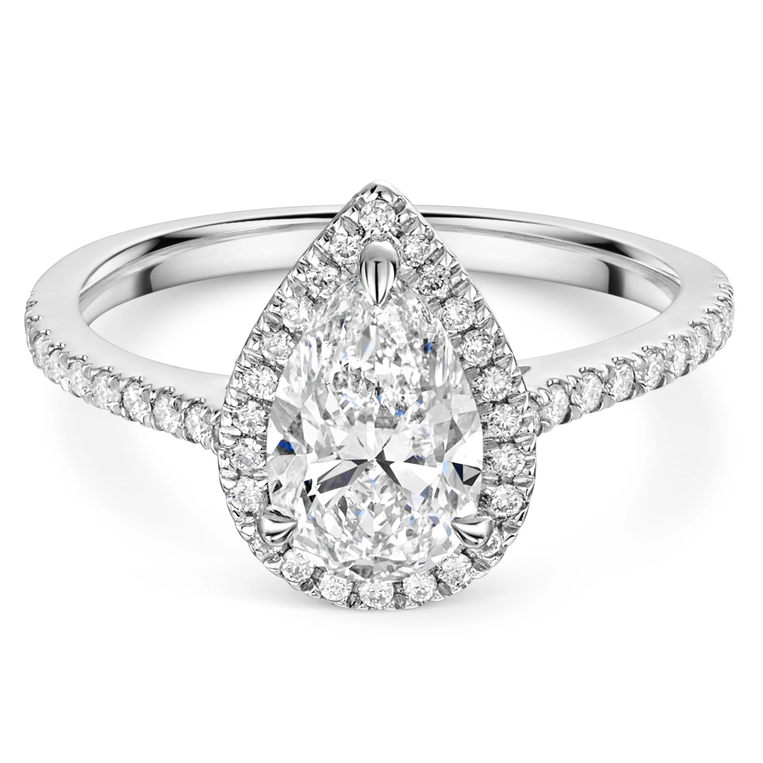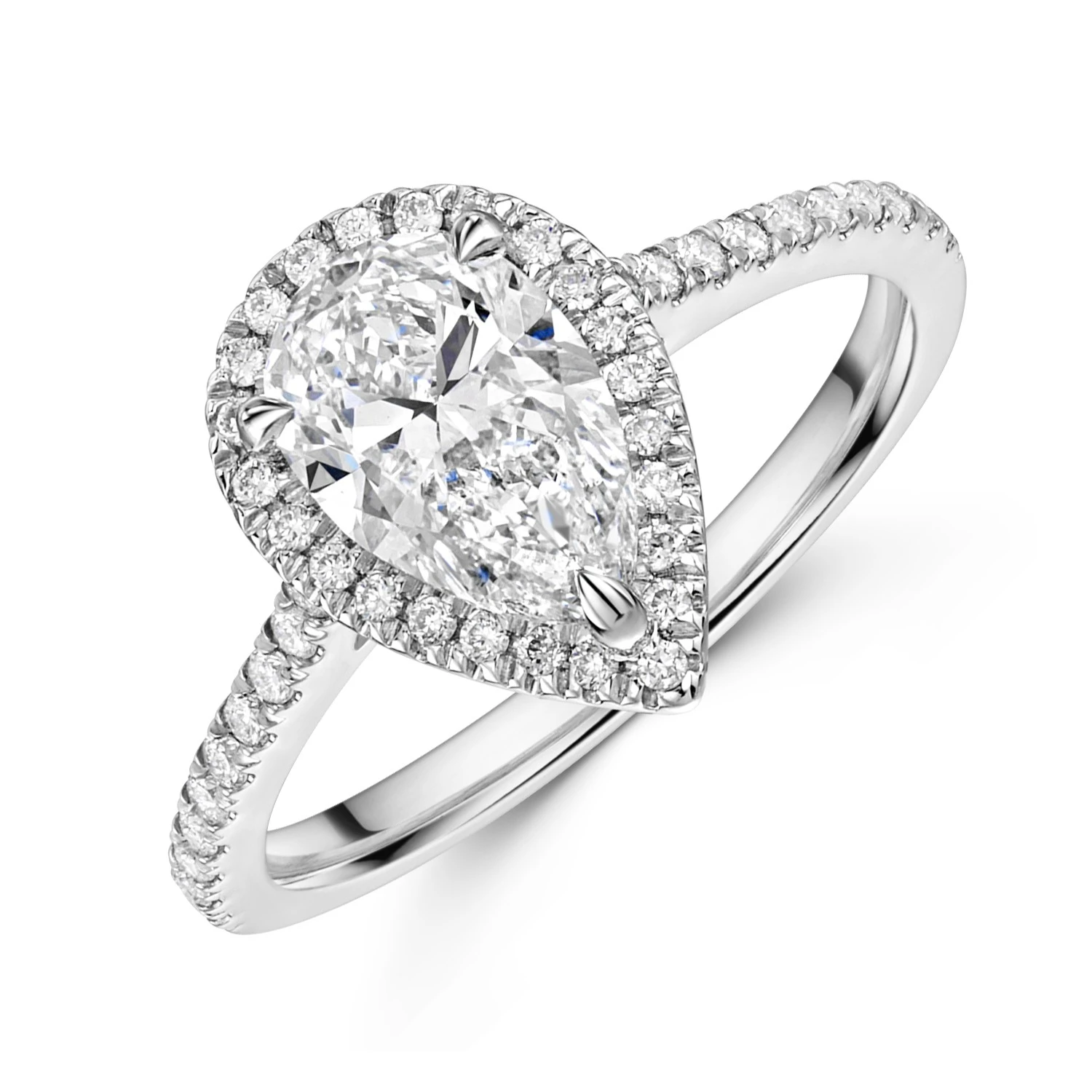 Chisholm Hunter Platinum Lab Grown 1.50ct Pear Diamond Halo Shoulders Ring