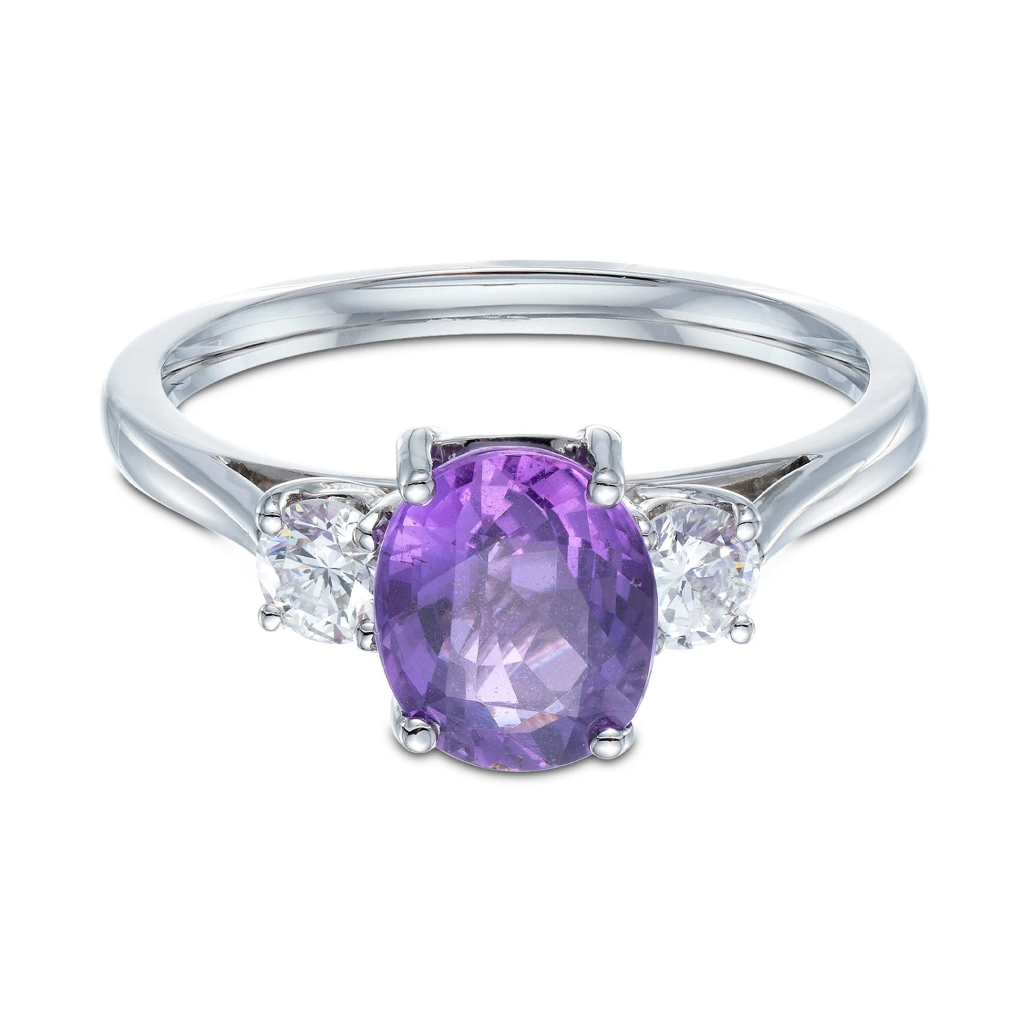 Chisholm Hunter Platinum Oval Cut 1.94ct Purple Sapphire And 0.34ct Diamond Three Stone Ring