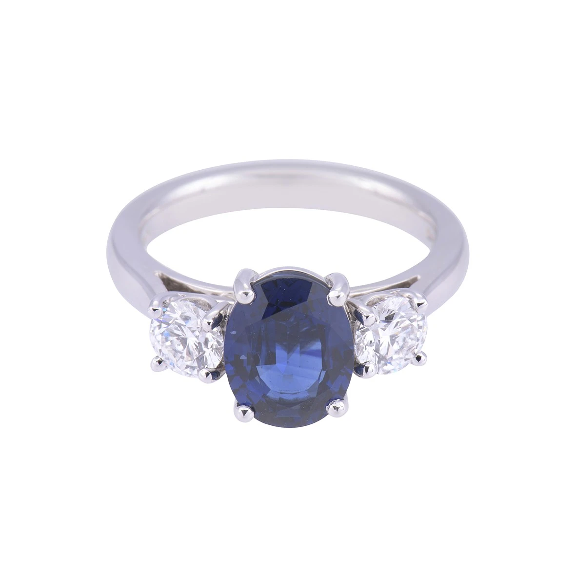 Platinum oval cut sapphire 2.27ct and round brilliant 0.76ct 3 stone