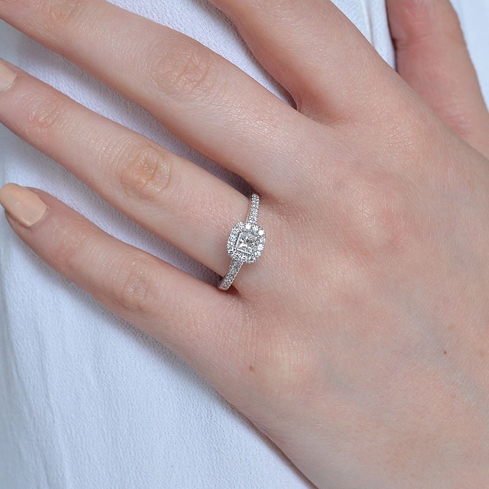 Be the first to review “Chisholm Hunter Platinum Princess Cut 0.65ct Diamond Halo Ring” Cancel reply