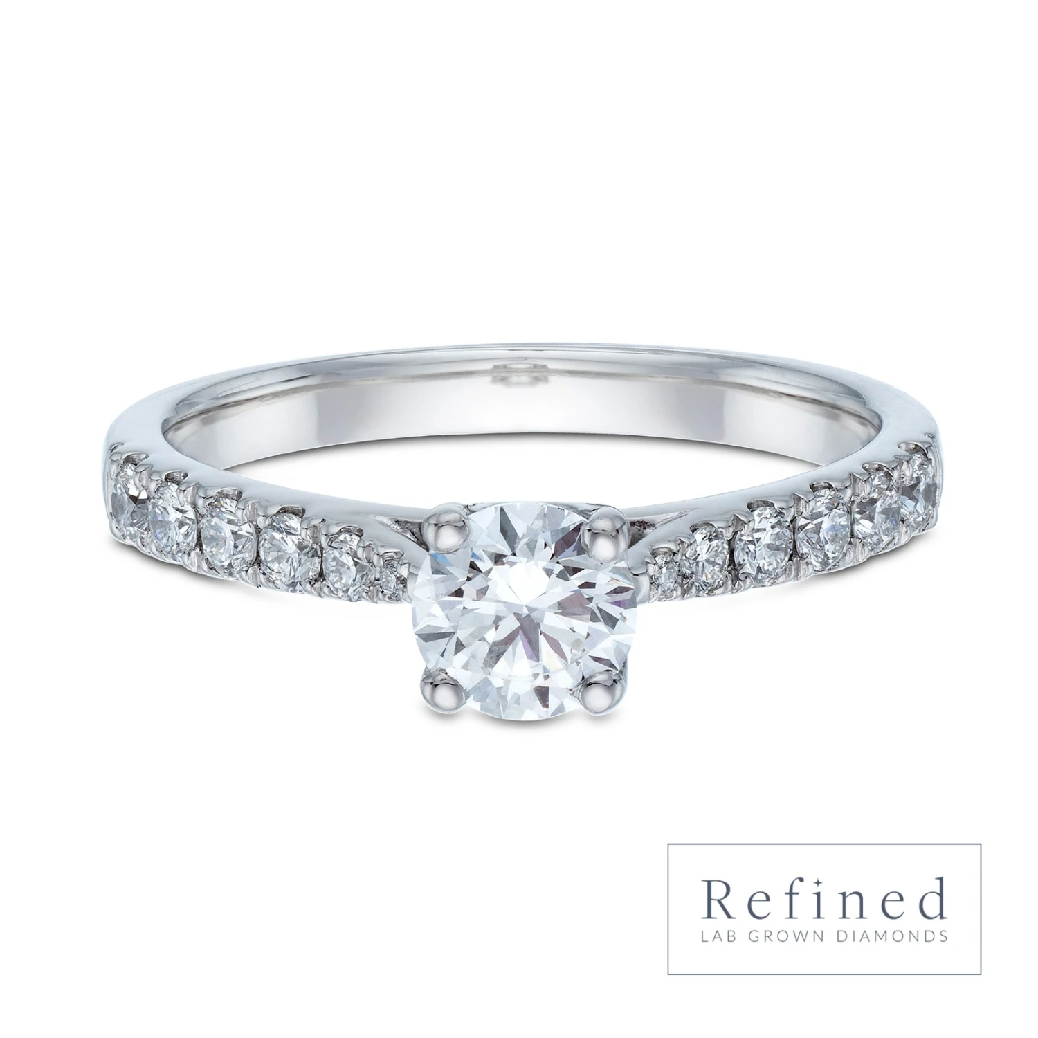 With clean, simplistic lines, the classic solitaire engagement ring honours the wearer with timeless modernity. Four curved prongs caress the round brilliant cut 0.50ct lab grown diamond, allowing light to enter from all directions for maximum brilliance whilst the thoughtfully designed platinum band has been meticulously perfected for ultimate comfort. Begin the next chapter of your life with expertly cut and polished lab-grown diamonds from Chisholm Hunter.
