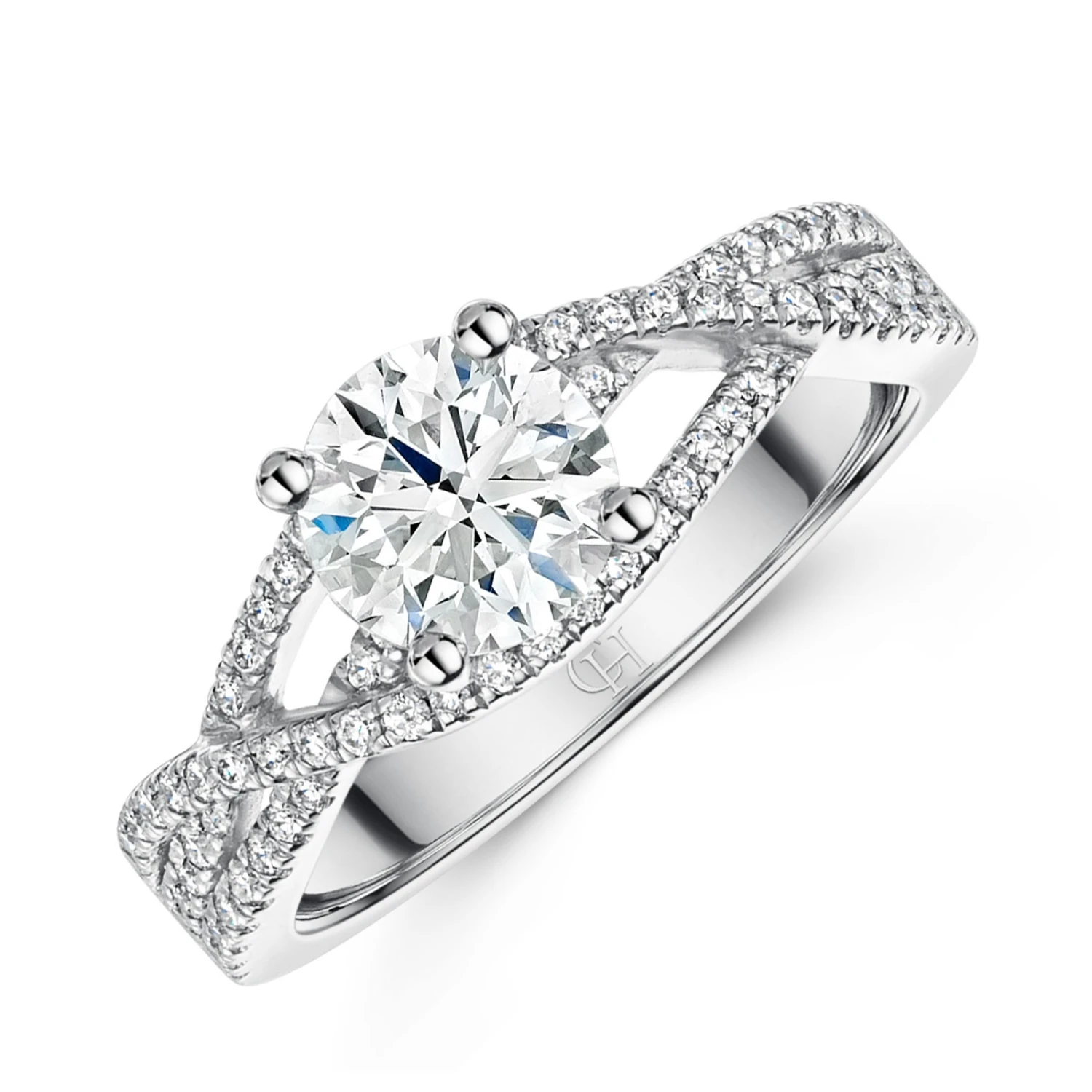 Chisholm Hunter Platinum Round Brilliant 1.25ct Diamond Cross Over Solitaire Ring