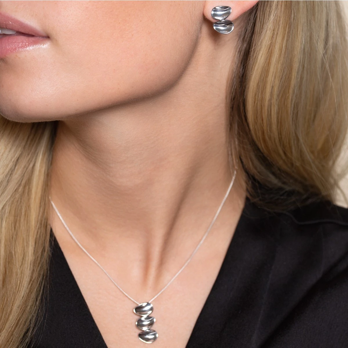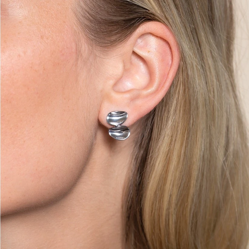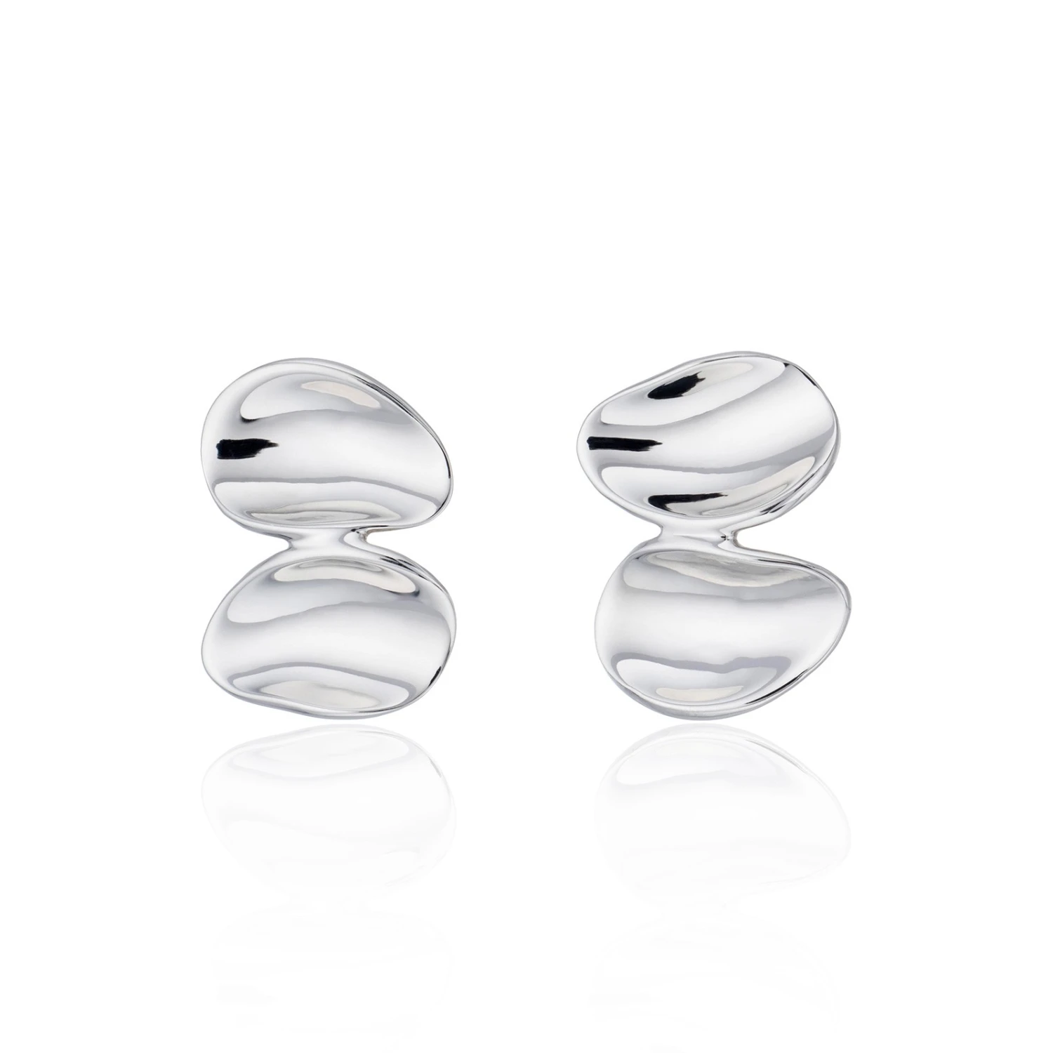 Chisholm Hunter Silver Concave Pebble Stud Earrings