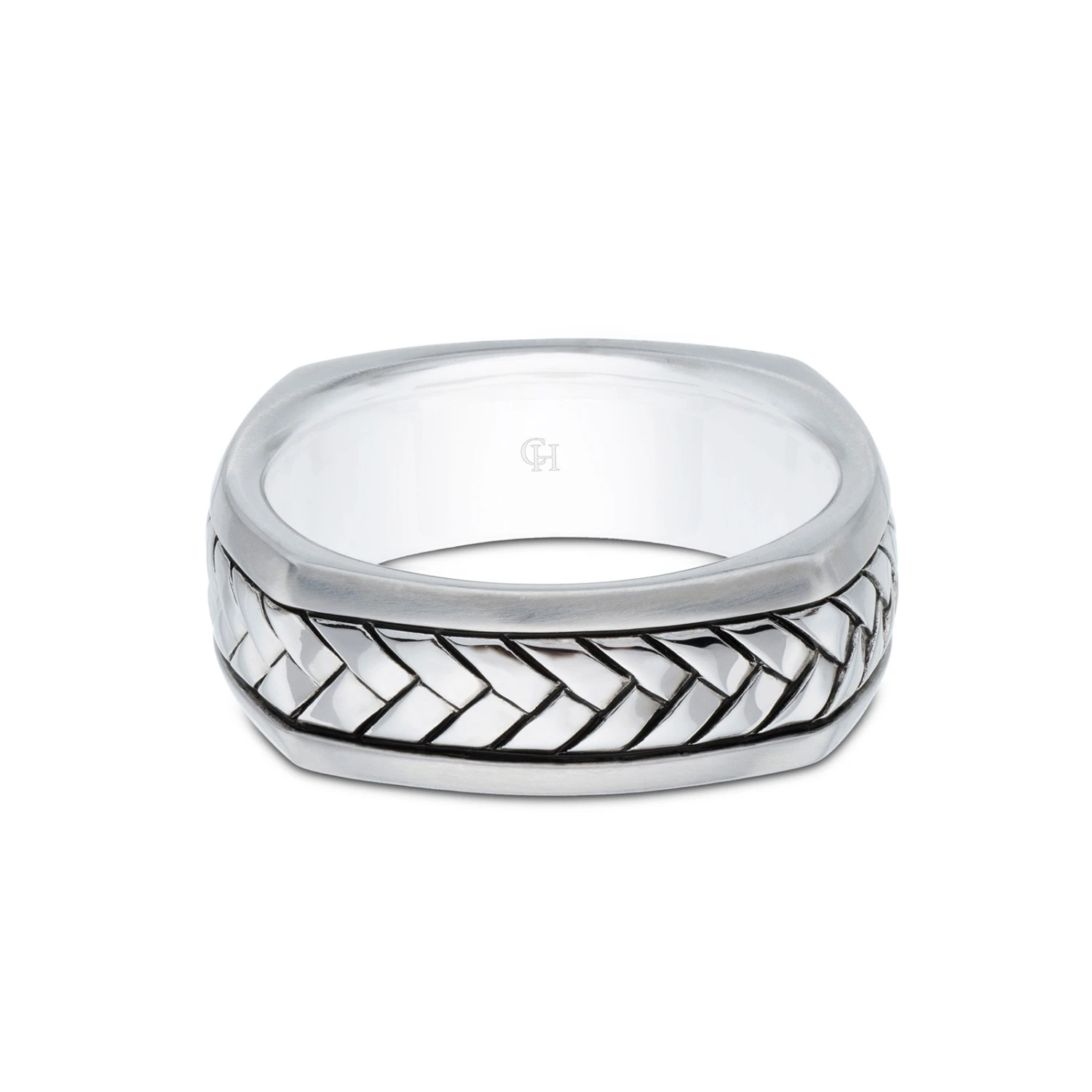 Chisholm Hunter Silver Gents 8mm Square Herringbone Ring
