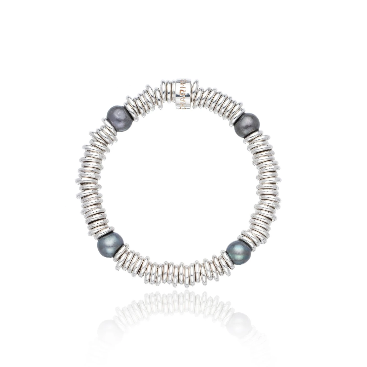 Sterling Silver expandable multi link bracelet featuring 4 grey pearls.