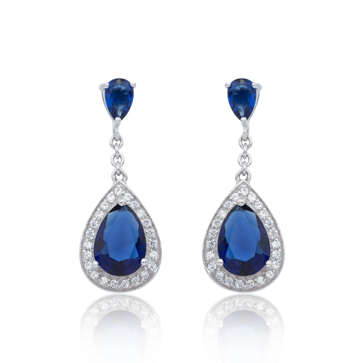 Chisholm Hunter Silver Pear Cut Blue Cubic Zirconia Drop Earrings