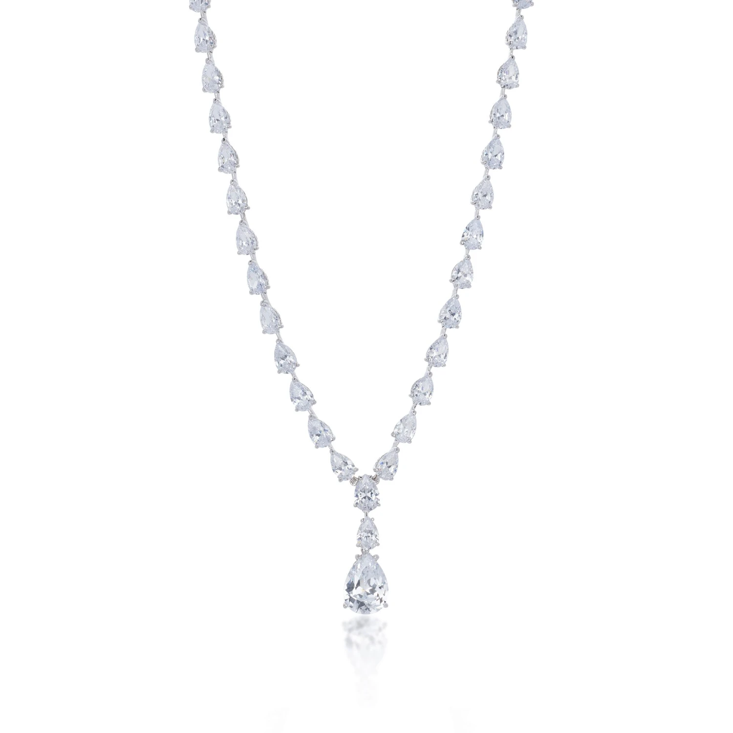 Chisholm Hunter Silver Pear Cut Cubic Zirconia Drop Necklace