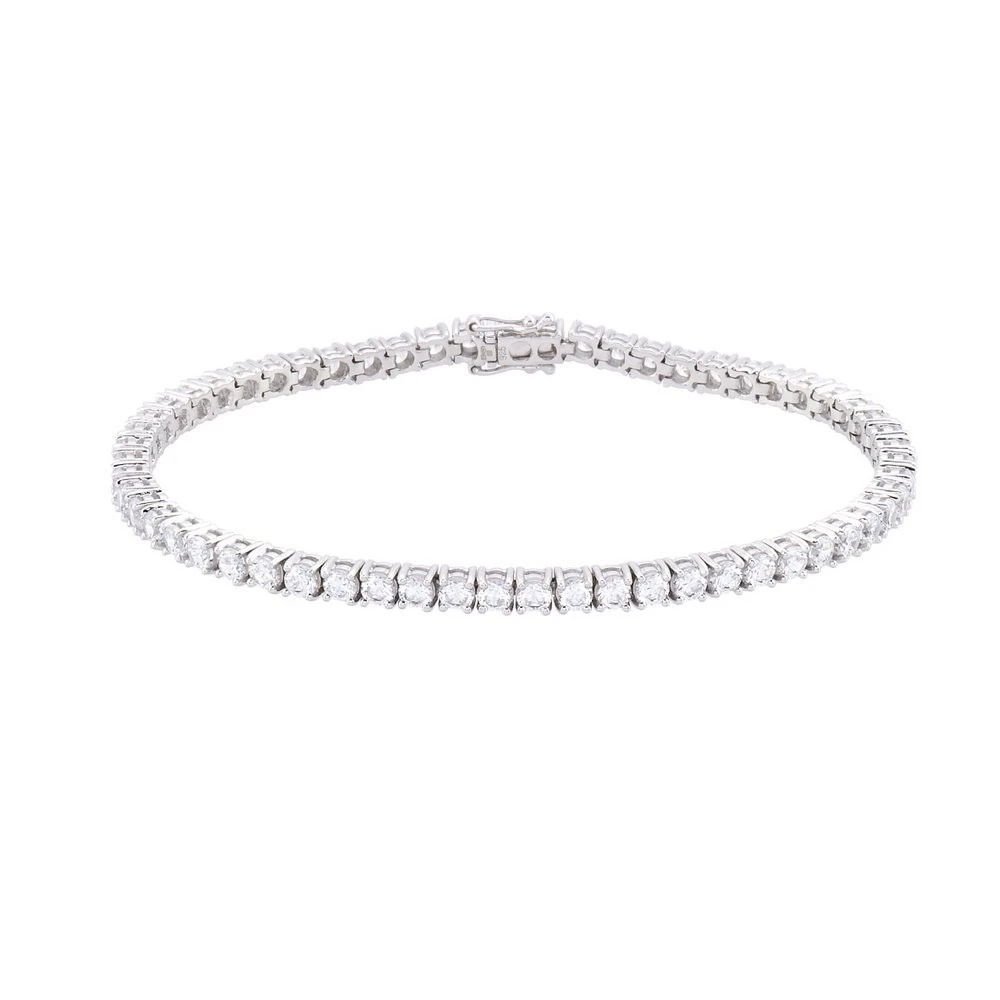 Proudly wear this sterling silver tenni bracelet adorned and set with round brilliant cut white cubic zirconia. A staple piece for anyone who enjoys adding a touch of sparkle to any look.
