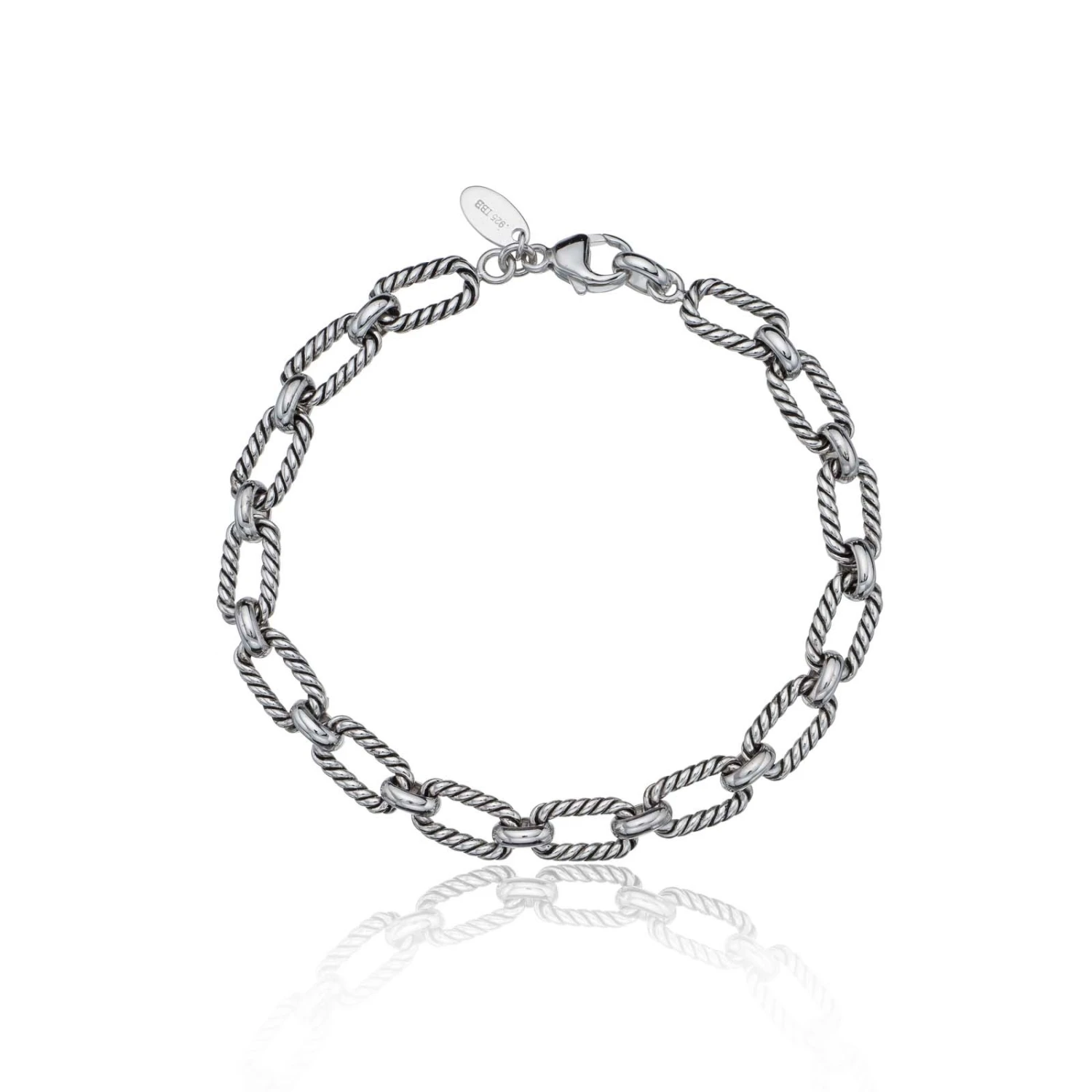 Chisholm Hunter Sterling Silver Textured Twist Link Mens Bracelet