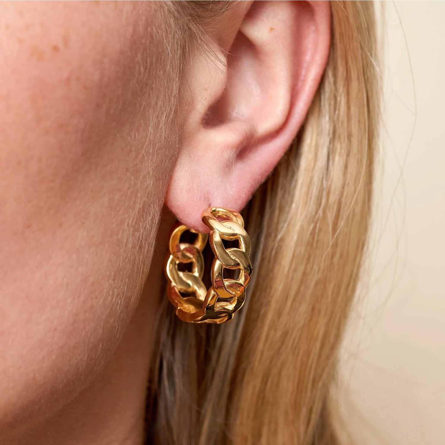 Chisholm Hunter Yellow Gold Plated Chain Hoop Earrings