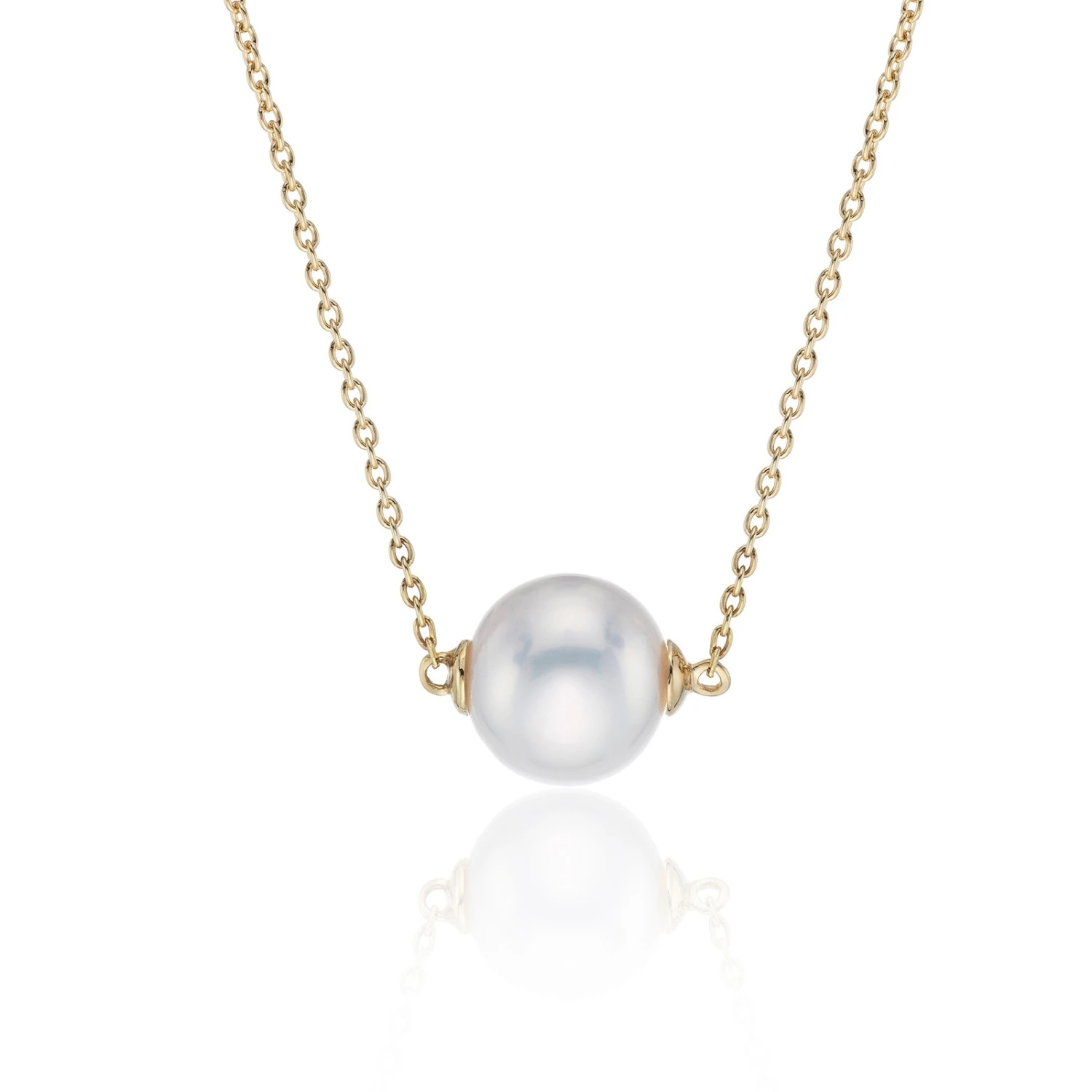 Beautifully coated with lavish yellow gold, this gorgeous pearl pendant is perfect for draping across your collarbones for a glistening lustre effect. Coordinate with our stunning range of pearl earrings, bracelets and rings to create a bold fashion statement, or wear on its own for a more refined look. Total chain length – 16-18 inches.