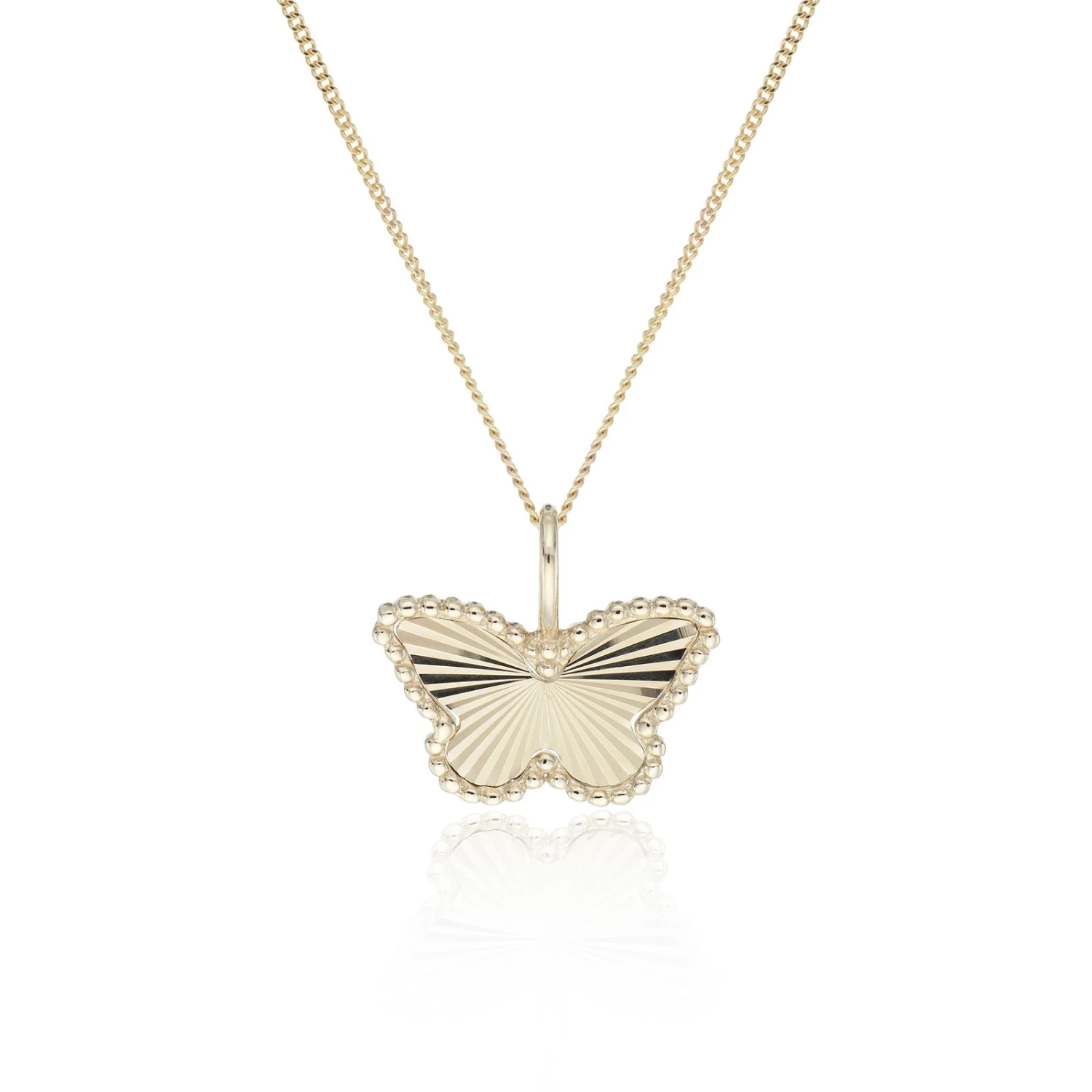 Chisholm Hunter Yellow Gold Plated Textured Butterfly Pendant Necklace