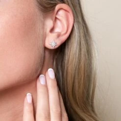 Chisholm Hunter 9ct White Gold Brilliant Cut 0.37ct Diamond Snowflake Stud Earrings