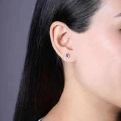 Chisholm Hunter 9ct White Gold Diamond 0.23ct And Ruby Halo Earrings