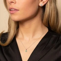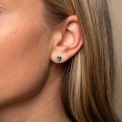 Chisholm Hunter 9ct White Gold Emerald And Diamond Halo Earrings