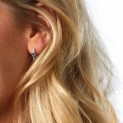 Chisholm Hunter 9ct White Gold Oval Cut 0.20ct Diamond And Blue Topaz Hoop Earrings