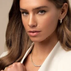 Chisholm Hunter 9ct Yellow Gold Baguette And Brilliant Cut 1.25ct Diamond Hoop Earrings