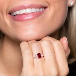 Chisholm Hunter 18ct White Gold Oval Cut 1.97ct Ruby And 0.52ct Diamond Three Stone Ring