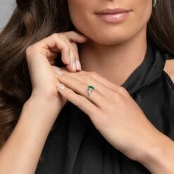 Chisholm Hunter 18ct White Gold Emerald Cut 1.12ct Sapphire And 0.43ct Diamond Three Stone Ring