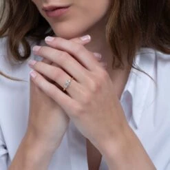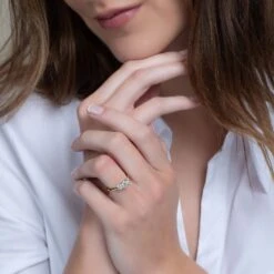 Chisholm Hunter 18ct Yellow Gold ‘Lotus’ Brilliant Cut 0.75ct Diamond Three Stone Ring